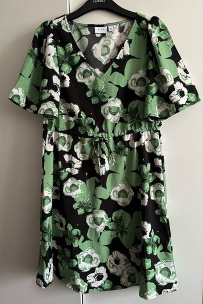 Robe verte à fleurs Portée 1 fois 36-38