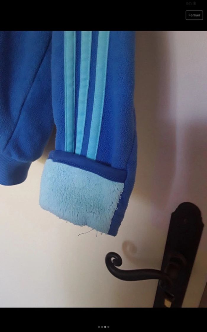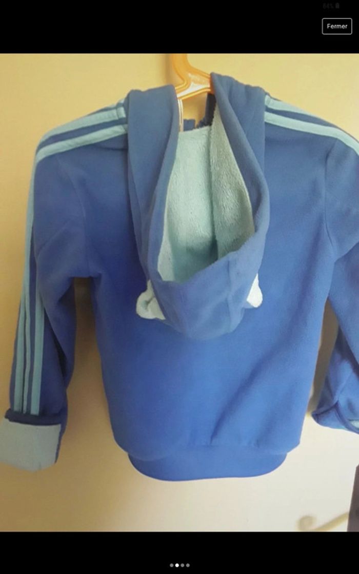 Veste sweat bien chaude,a capuche avec oreilles😊 taille 2 3 ans ,le bas des manches peut servir de moufles ( bien pratique)