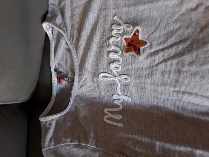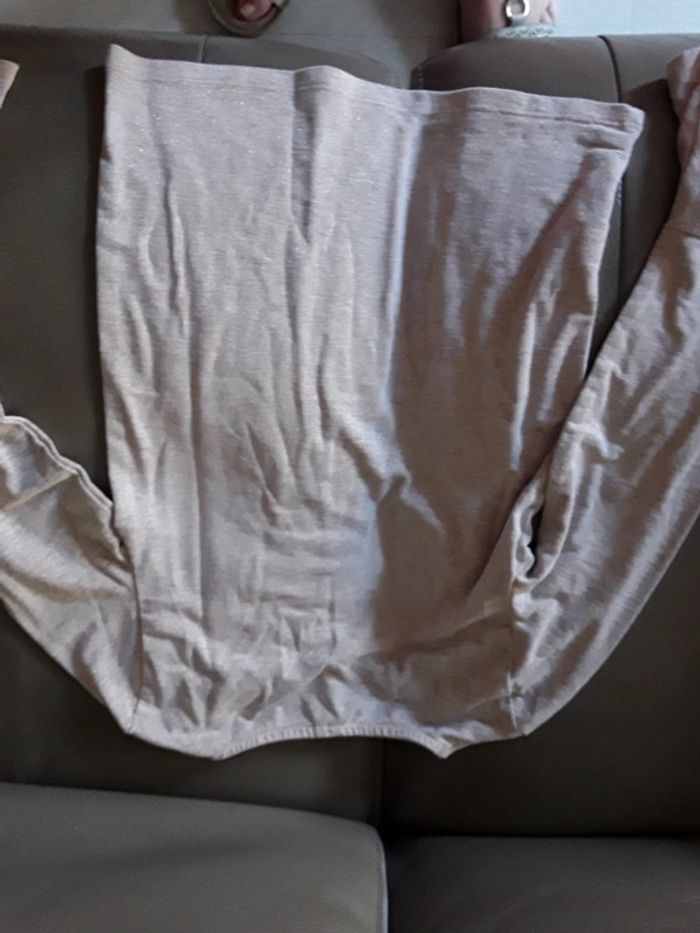 Tee shirt manches longues volantes couleur beige avec fils rose doré,etoile sequins