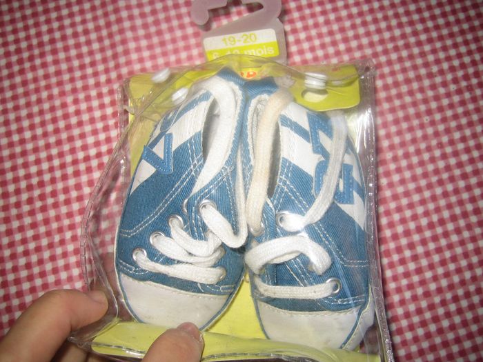 basket bébé bleu et blanc taille 19-20 environ 6-12 mois dans emballage d'origine comme neuve