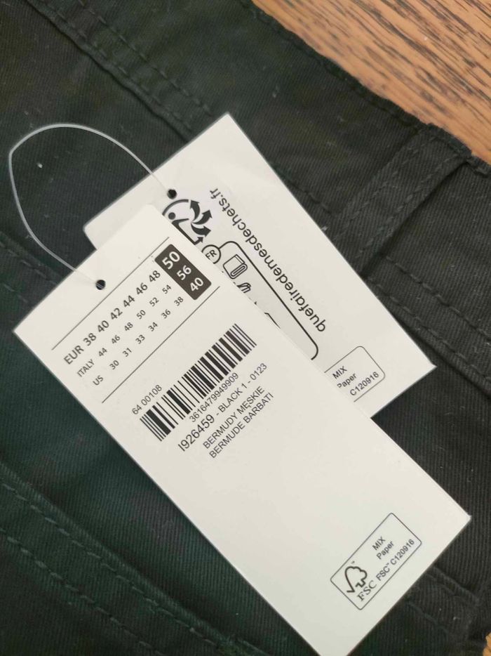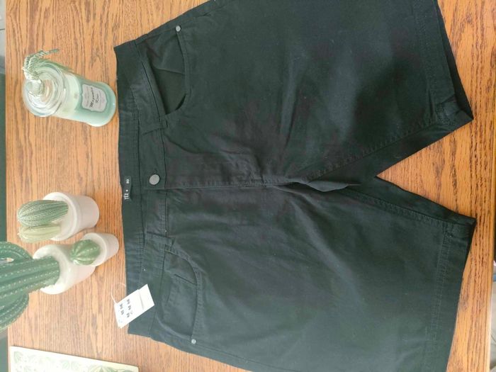 Bermudas Chino Noir uni T.50 (XXL) Décontracté/ habiller Catégorie : Short Chino uni noir marque : Tex Modèle : homme Taille : XXL soit 50 État : NEUF ENCORE ÉTIQUETÉ Jamais porté... POCHE : OUI