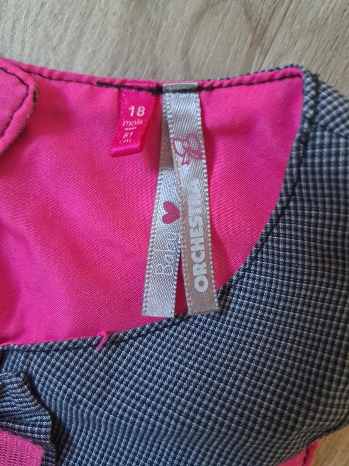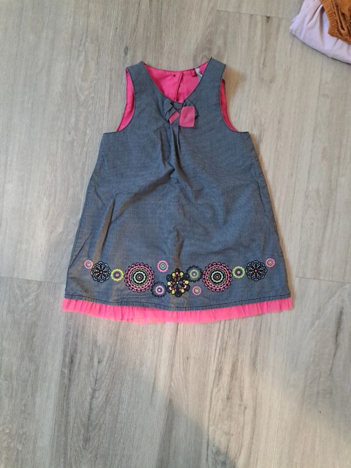 Robe fille 18 mois gris et motifs rose. Très bon état.