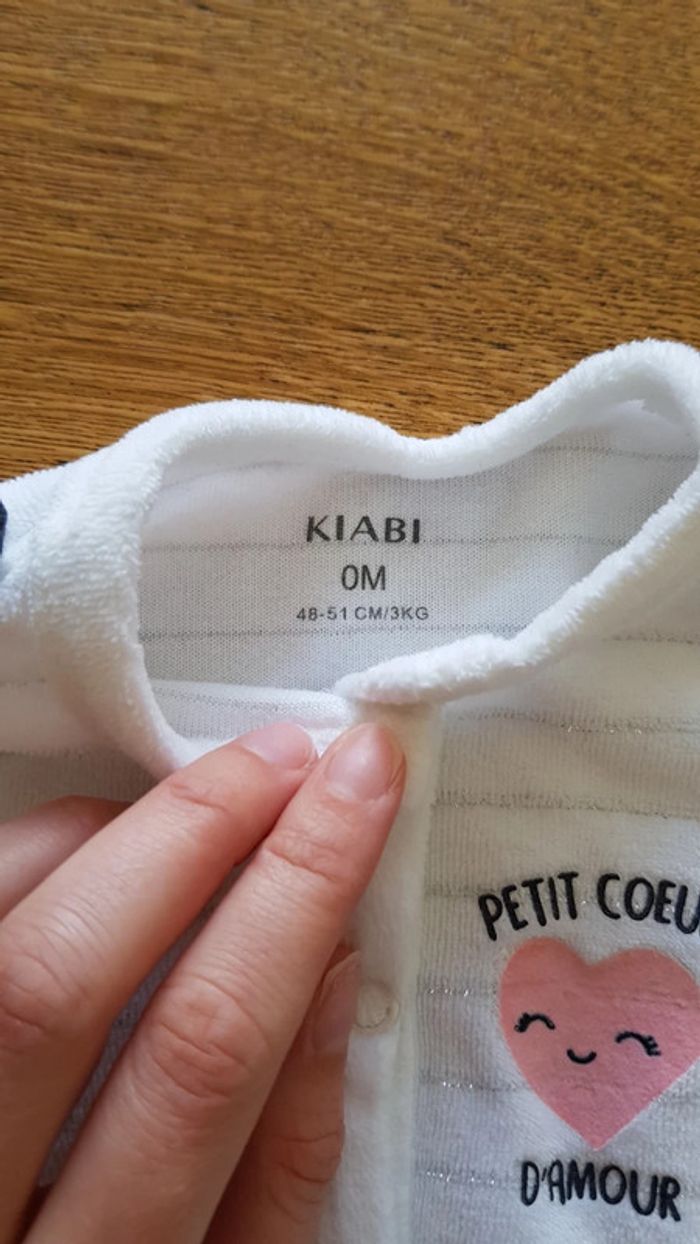 Pyjama ouverture devant très pratique. Marque kiabi taille 0 mois.