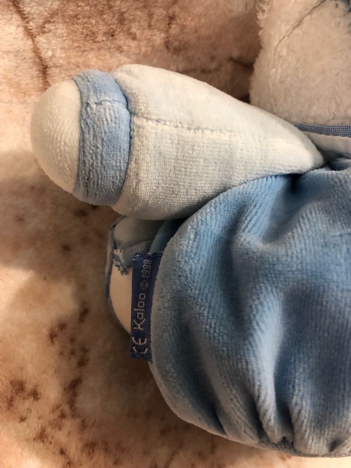 Doudou boule ours bleu blanc poisson bonnet marin Kaloo