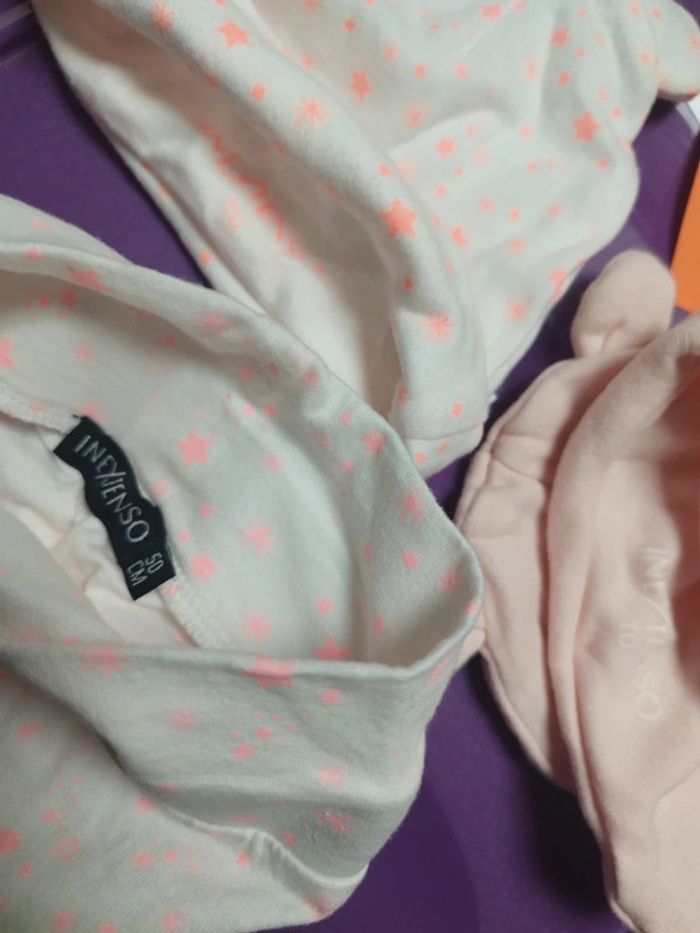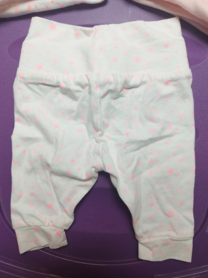 Lot de 2 bonnets et 1 legging. 1 bonnet avec étoiles oranges fluo 1 bonnet rose 1 legging avec étoiles roses. Comme NEUF, portés qu'une fois ! #vetementbebefille0moisjustine182129