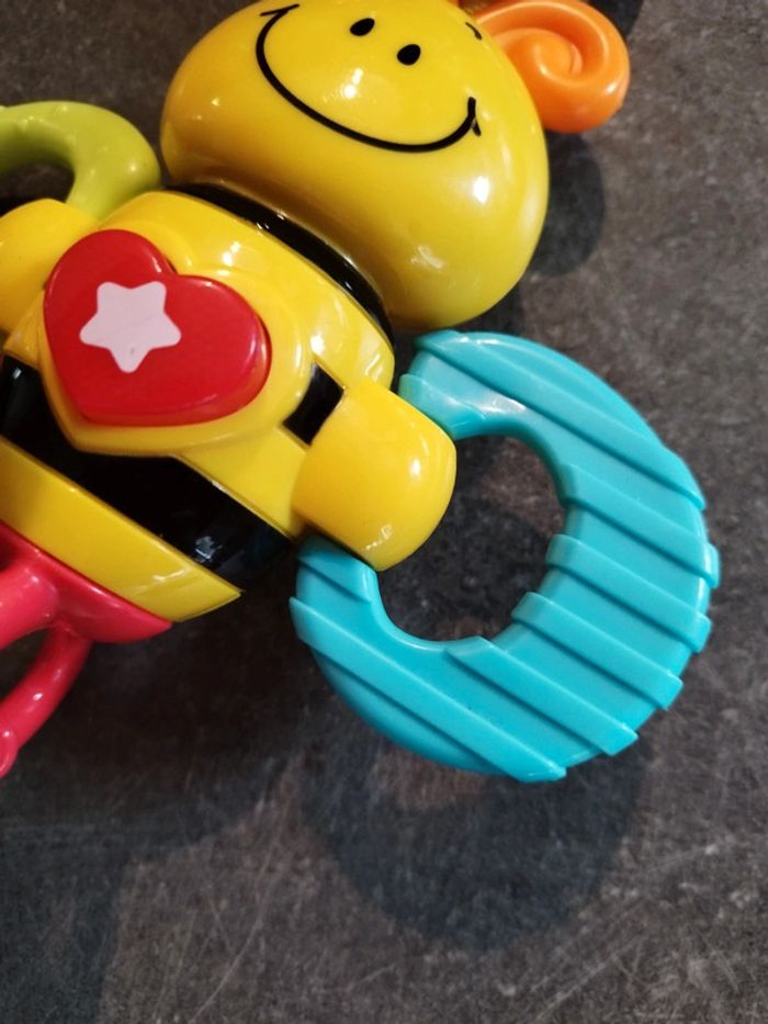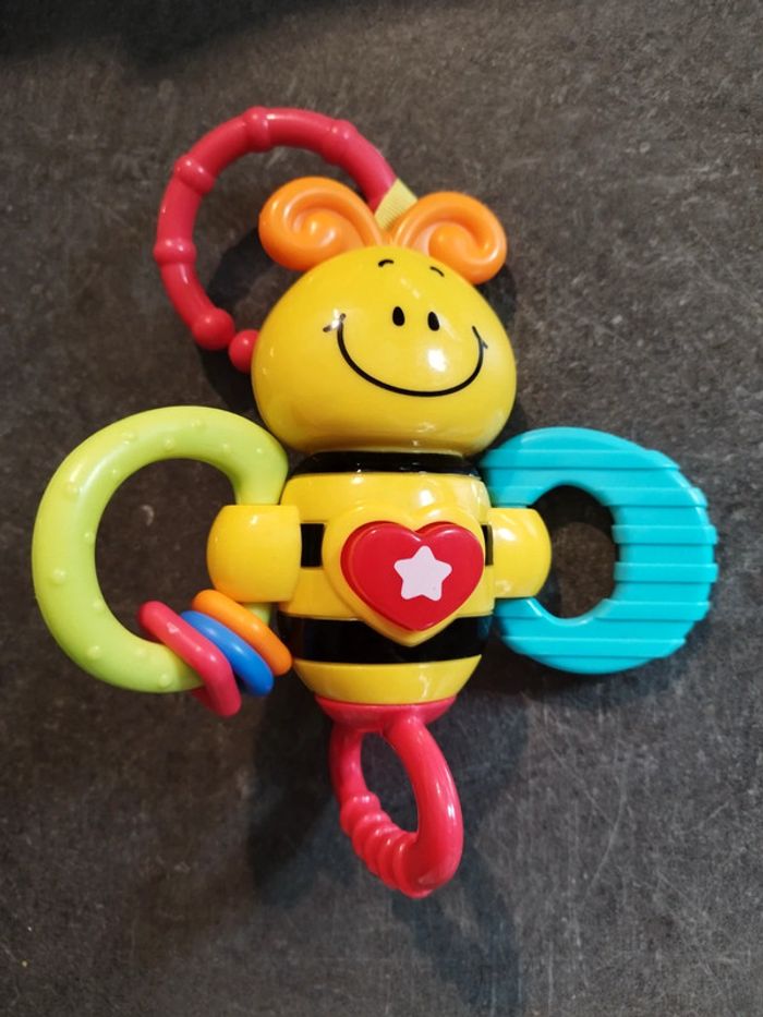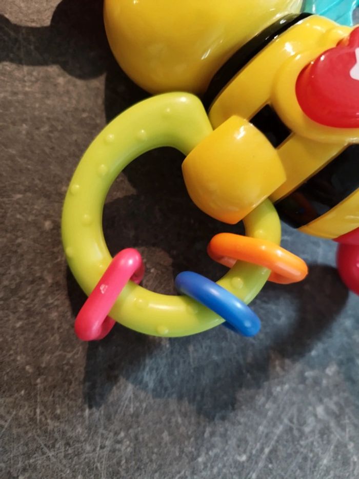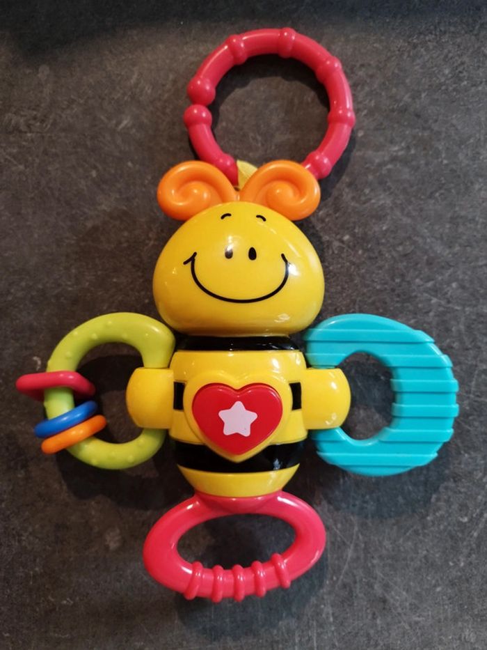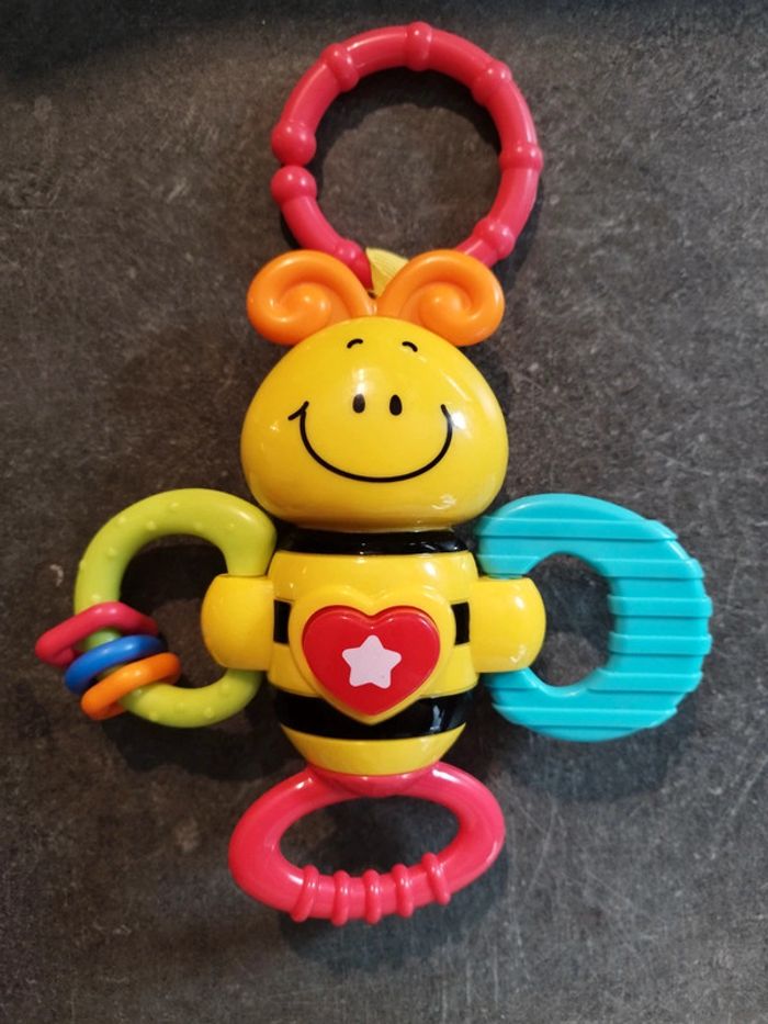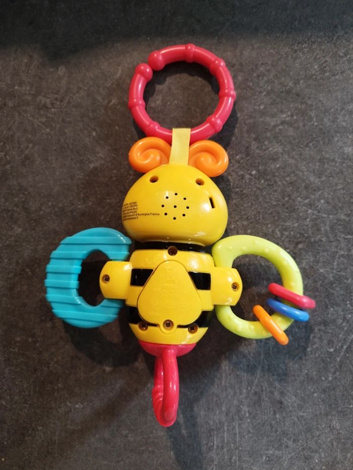 Jouet musical abeille, Très peu utilisé, en très bon état. L'anneau rouge se tourne et fait du bruit. Peut s'attacher à la poussette. #jouetbebejustine182129