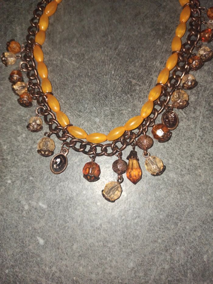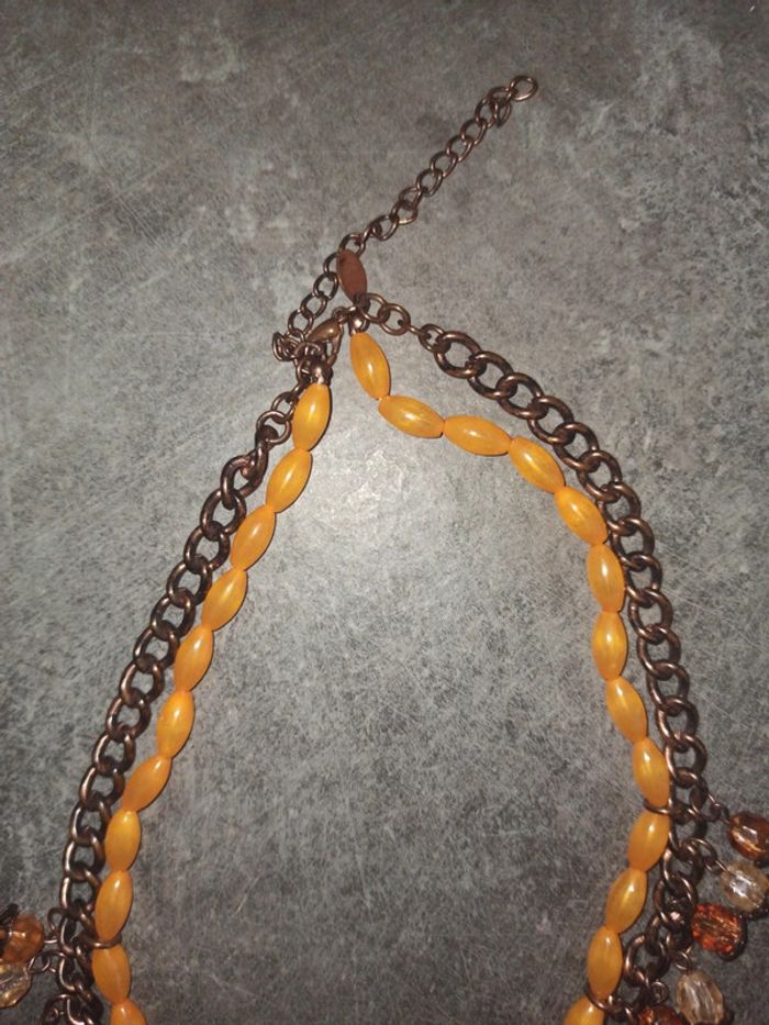Collier femme chaîne et perles oranges. Très bon état, porté une seule fois. #collierfemme #bijouxfemmejustine182129