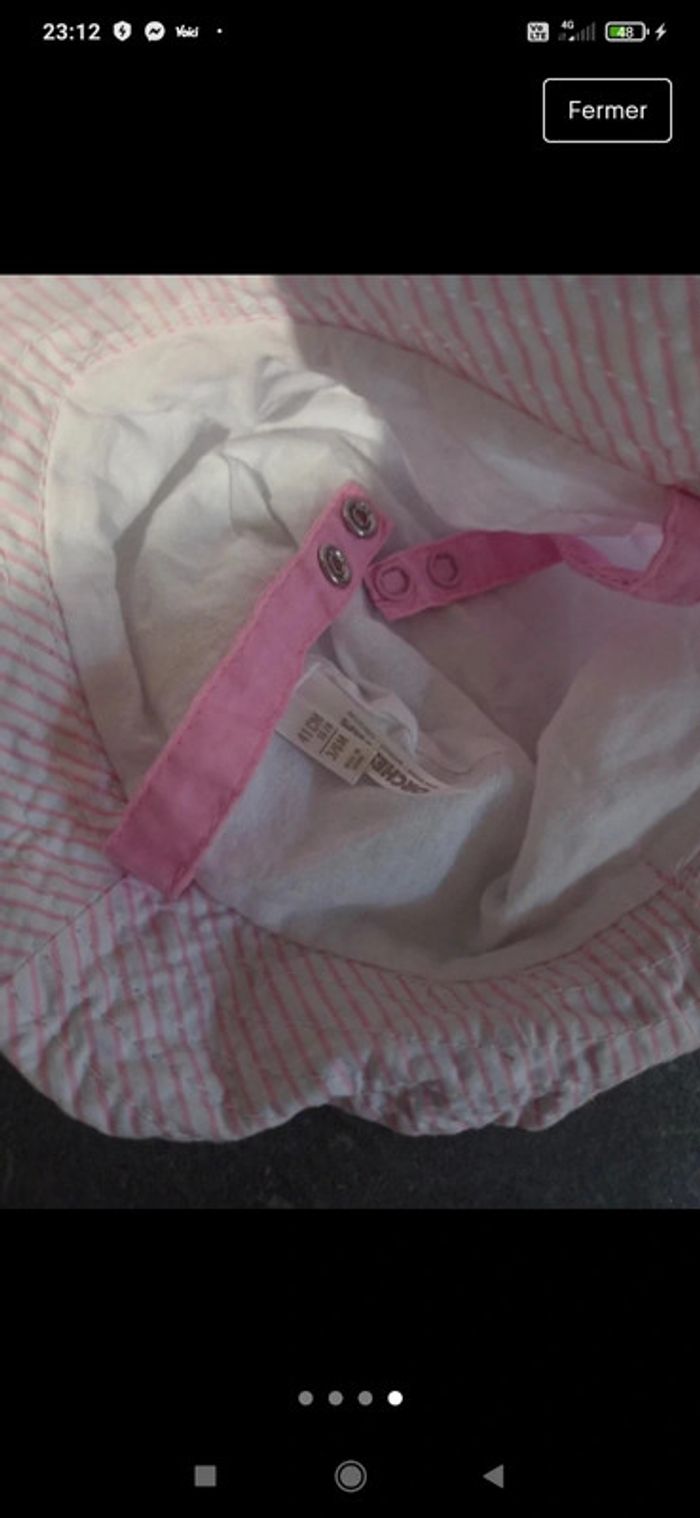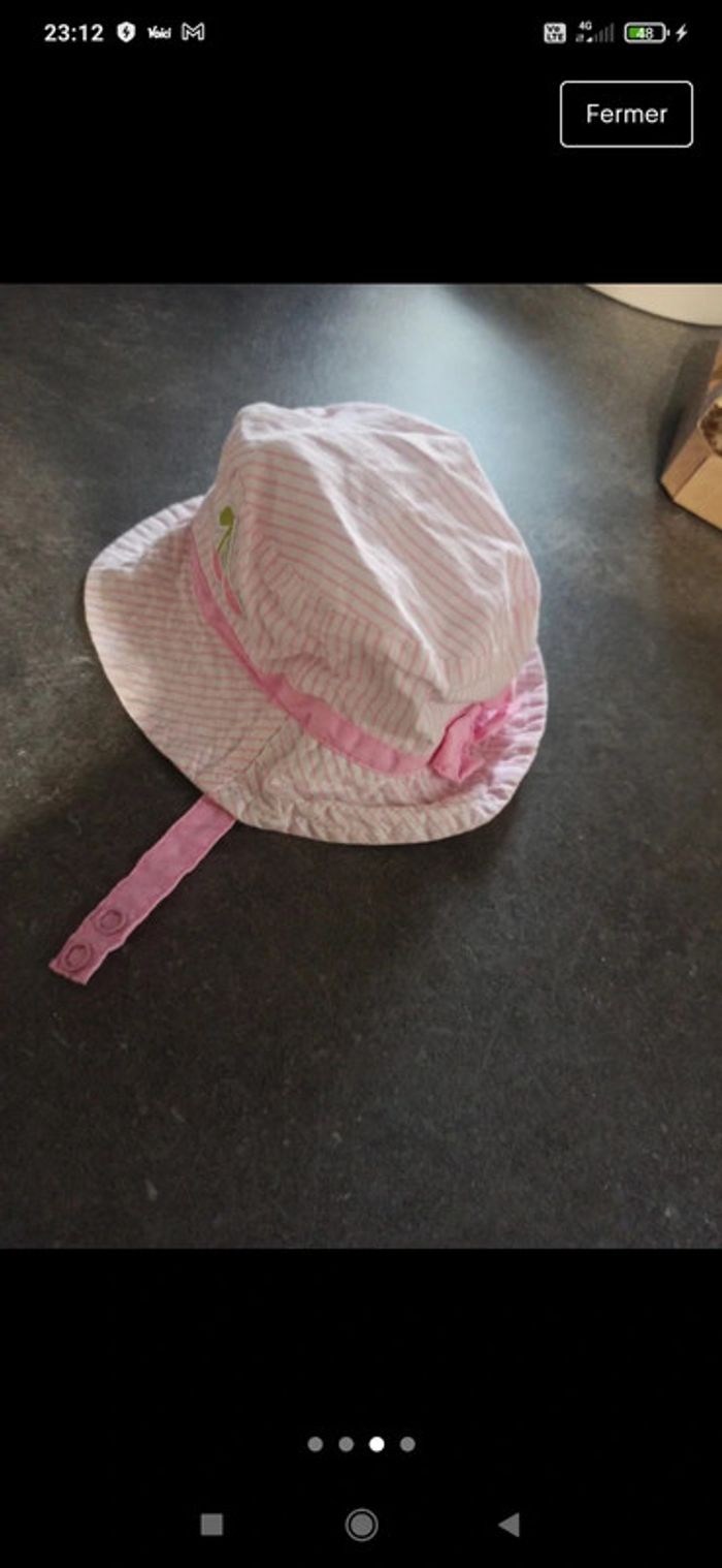 Chapeau avec lanières pour maintenir sur la tête au niveau du menton. NEUF jamais porté (trop petit pour ma fille 😅) taille 41cm #chapeaubebefille #vetementbebefillejustine182129