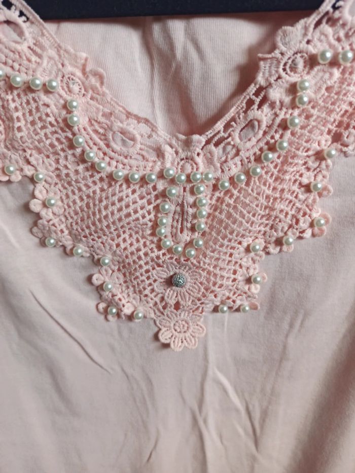 Robe d'été rose avec perles et broderie au niveau du décolleté, peu porté en très bon état. Taille unique #vetementfemmeSjustine182129 #vetementfemmeMjustine182129