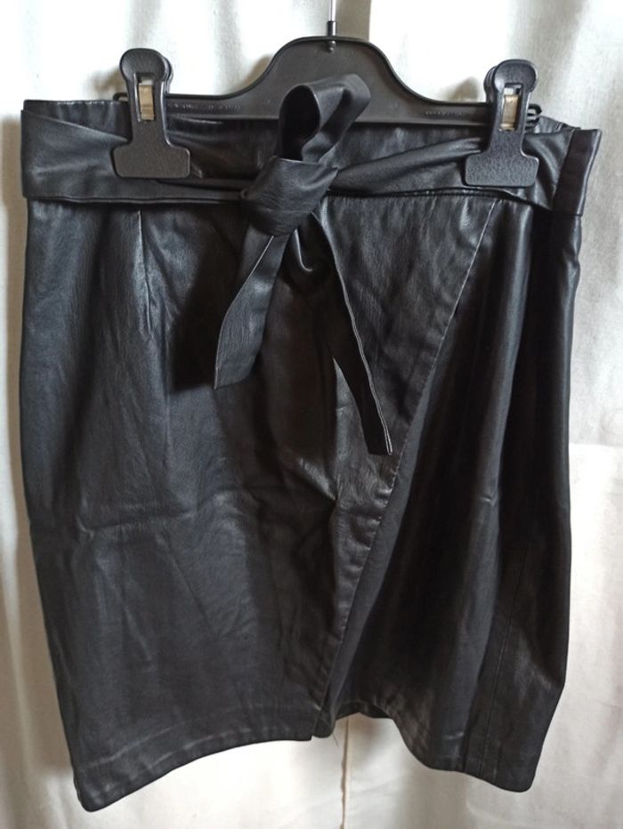 Jupe fendue sur le devant, noire en simili cuir. Très bon état, comme neuve portée une ou deux fois. Taille 38 #vetementfemmeMjustine182129