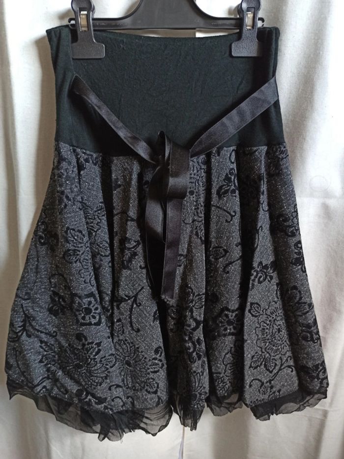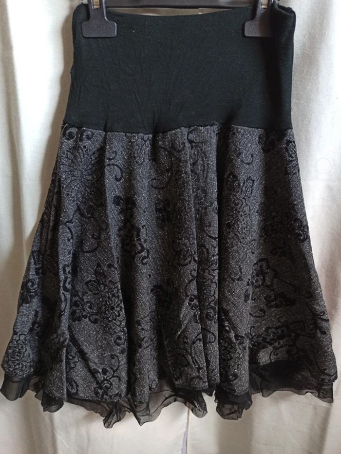 Jupe grise à fleurs noires brodées. Très bon état. Taille M #vetementfemmeMjustine182129
