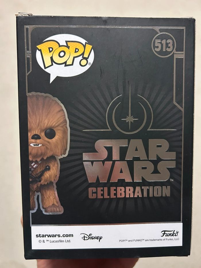 Funko Pop Star Wars 513 Chewbacca Galactic Convention 2022. Boîte légèrement abîmée à quelques endroits. Jamais deboxée. Envoi rapide et soigné