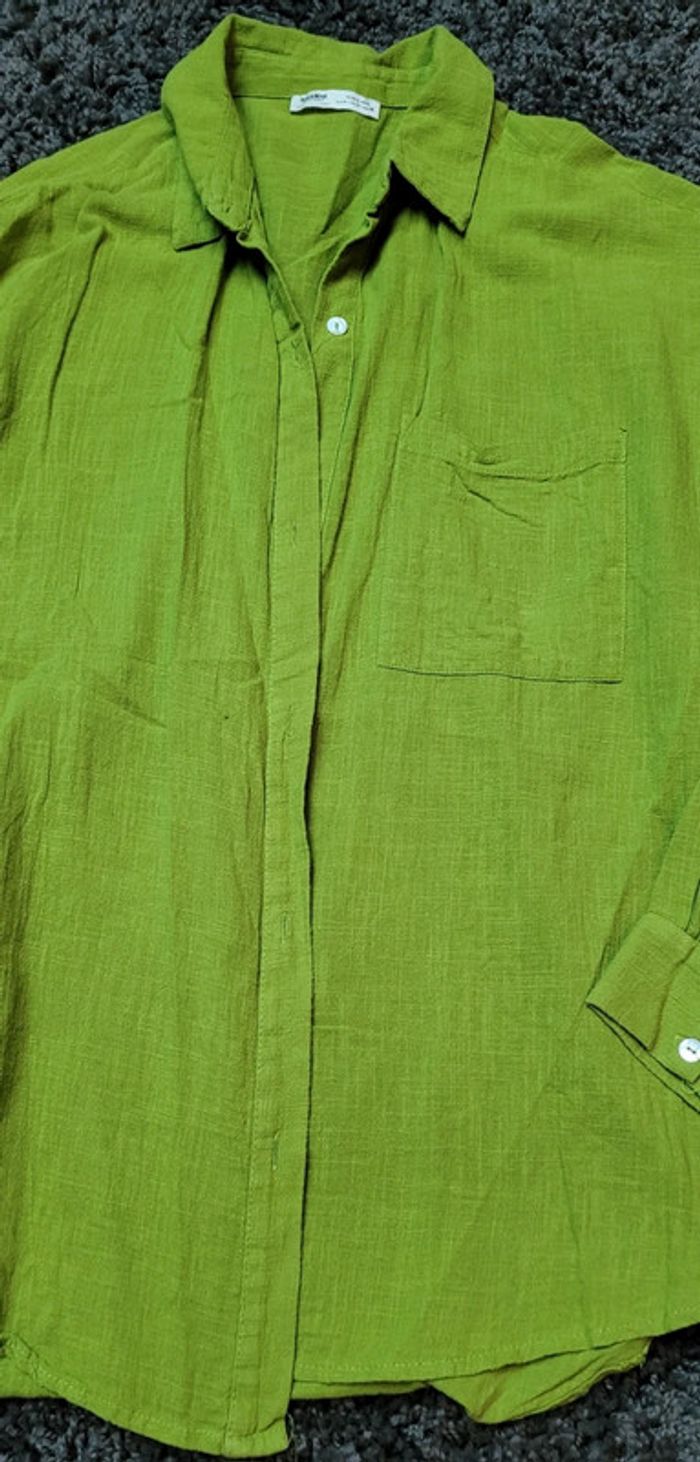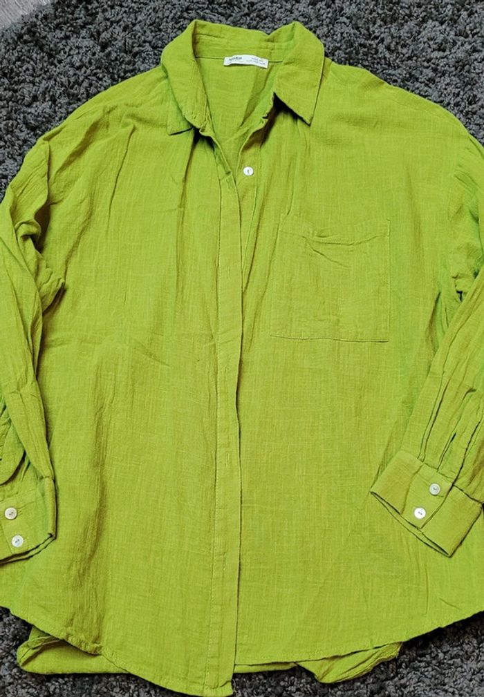 Jolie chemise, manches longues de couleur d'un vert vif. #Lili0405chemises