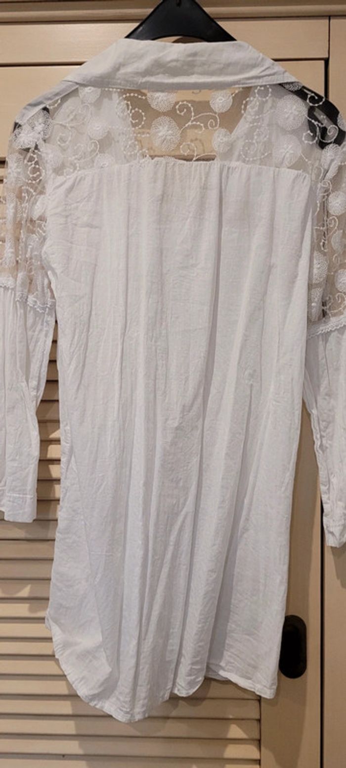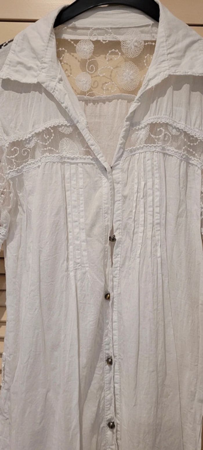 Chemise manches longues, avec dentelle sur le haut du corps, très sympa, neuve, jamais portée. Possibilité de raccourcir les manches via un bouton. #Lili0405chemises