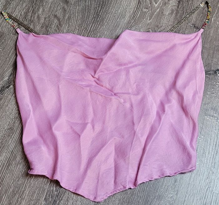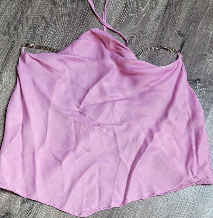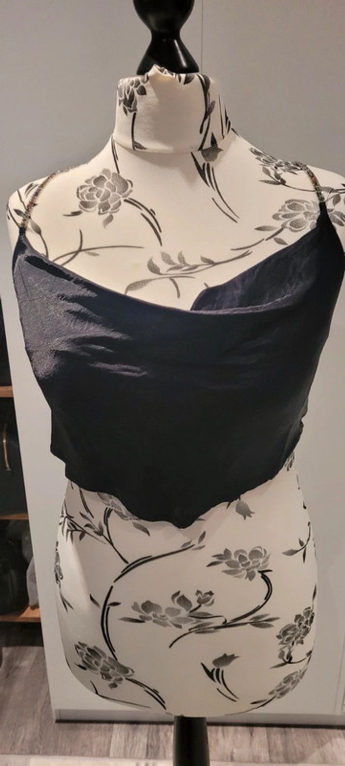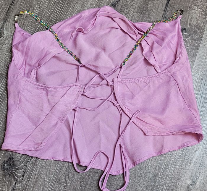 Très beau haut court dénudé dans le dos par laçage et bretelles avec strass Fotos porté avec le noir c'est le même #Lili0405tops