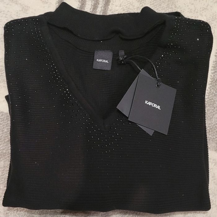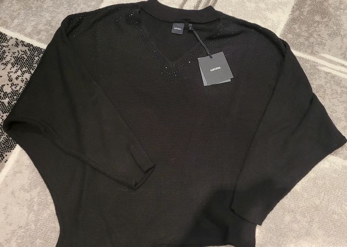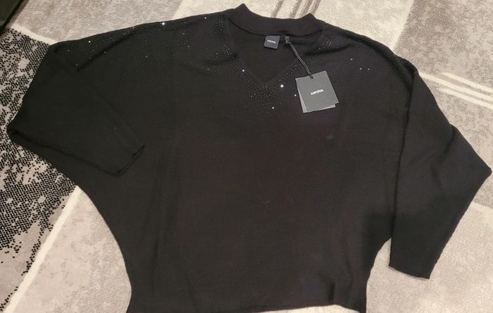 Très beau pull noir, manches chauve souris, strass sur le devant et les manches, col en V et col rond. Prix neuf 69,90 € #Lili0405pulls