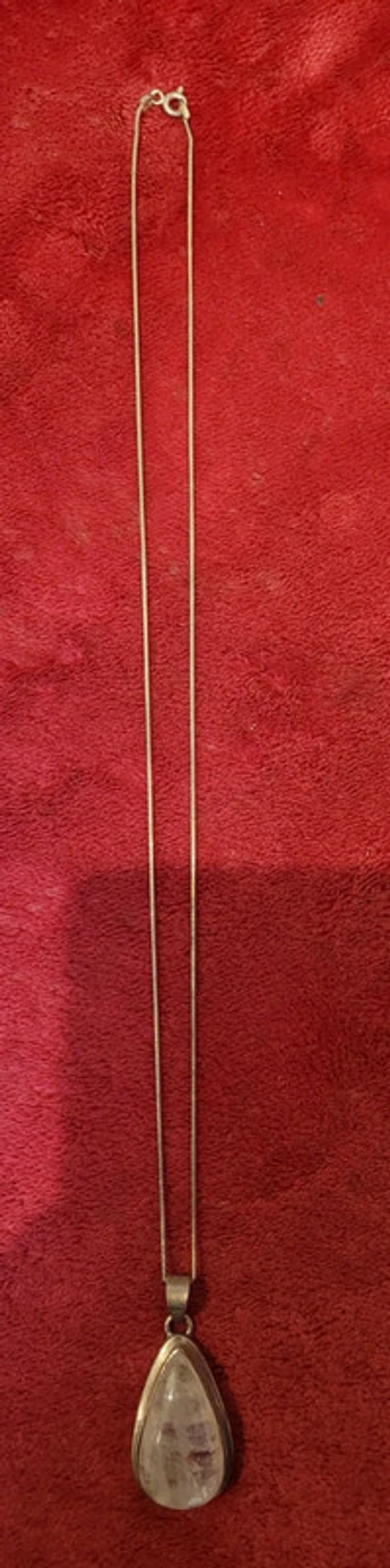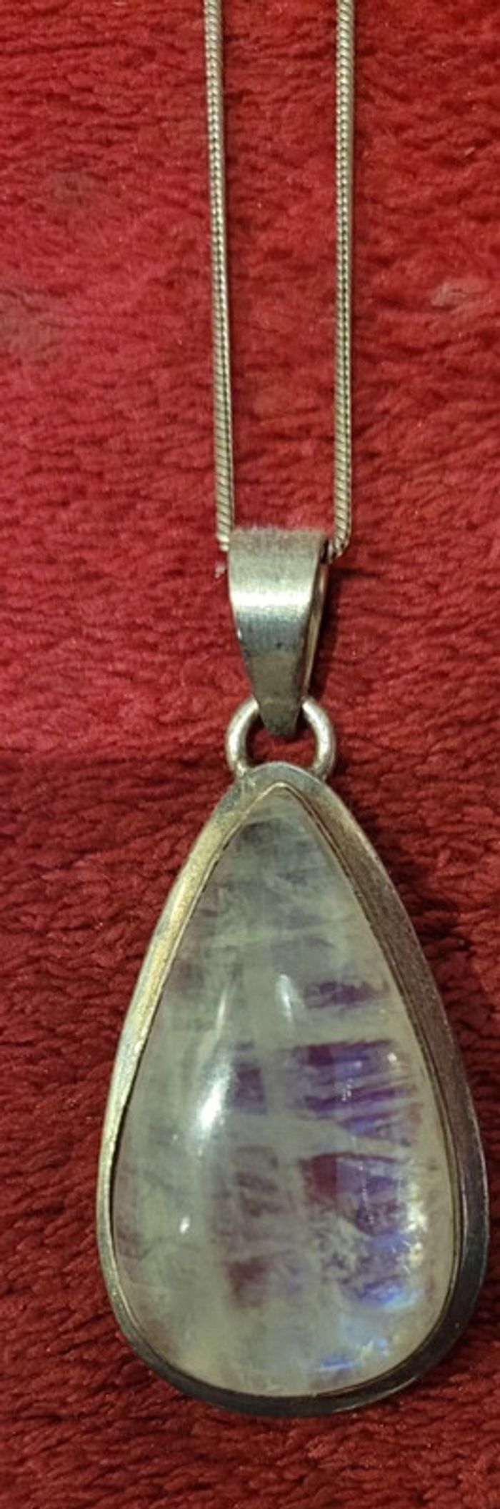Très beau pendentif en forme de goutte serti d'argent 925, le pierre est appelée pierre de Lune ou labradorite blanche #Lili0405bijoux
