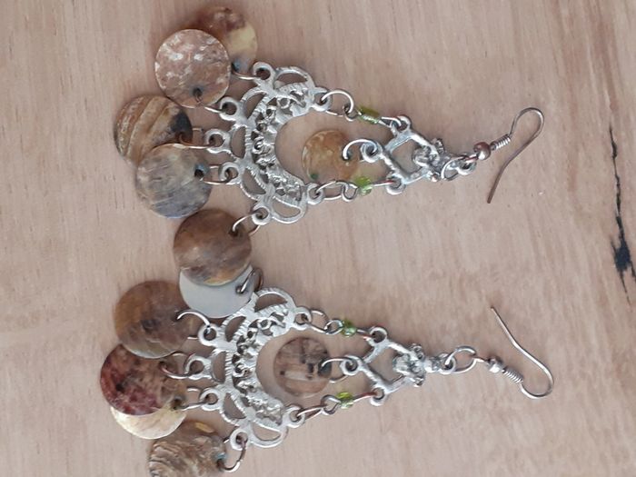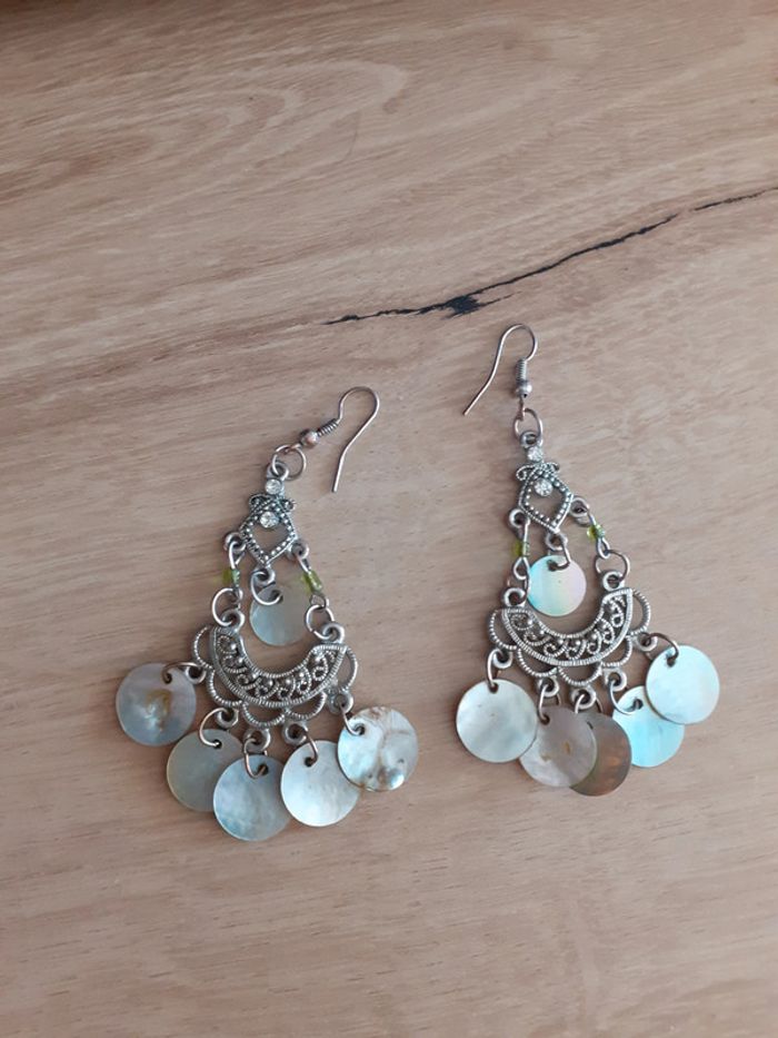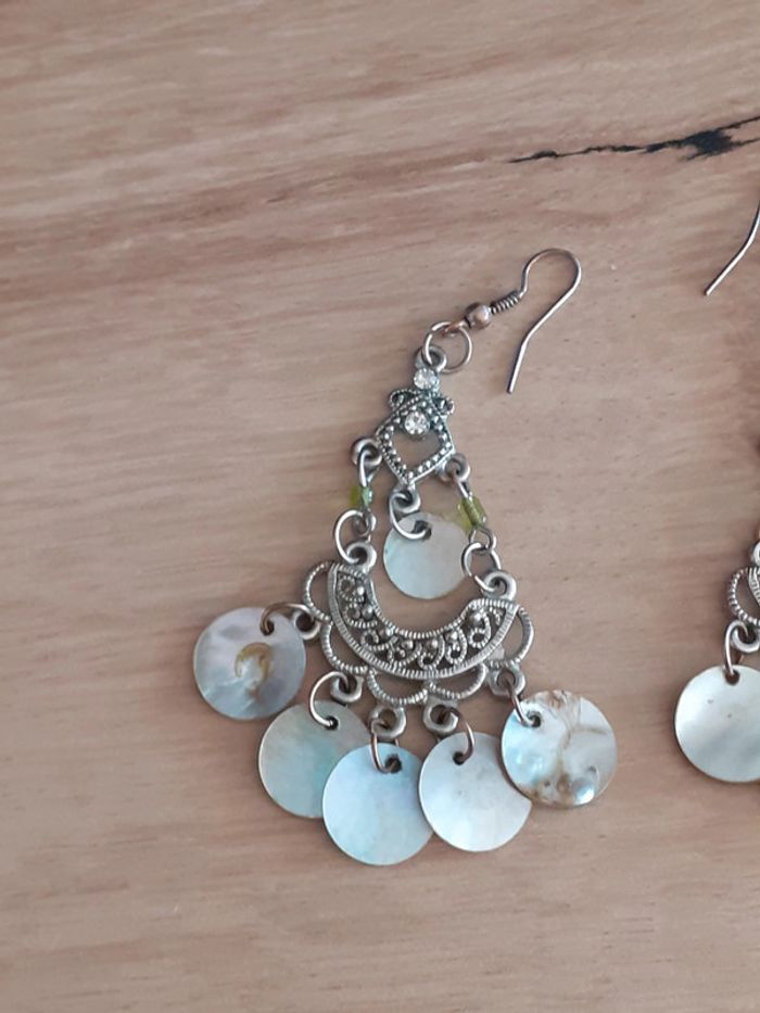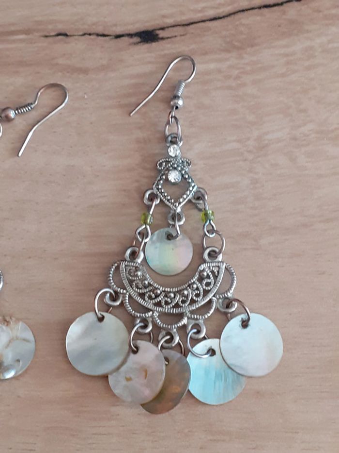 Boucle d'oreille fantaisie argenté avec breloque verte. En bon état Envoi rapide, soigné et sécurisé