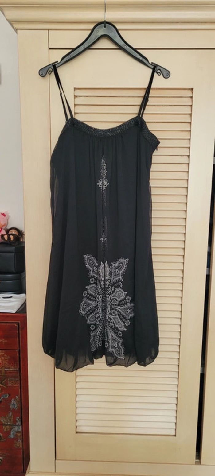 Jolie robe noire avec motifs très sympa, entièrement doublée, fermeture éclair sur le côté, bretelles réglables #Lili0405robescourtes