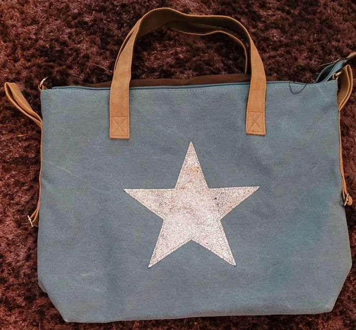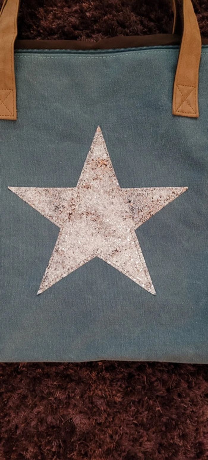 Sac cabas avec une jolie étoile en décoration sur le devant pailleté, en très bon état #Lili0405sacsamain