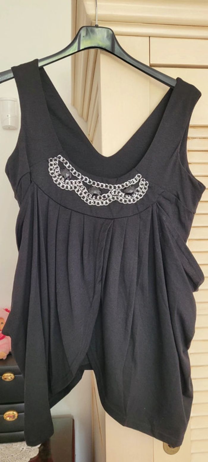 Haut stylé Top avec effet drapé sur le devant et l'arrière et joli bijou sur le devant #Lili0405tuniques