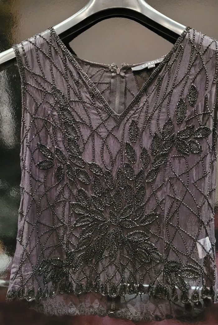 Petit haut stylé sans manches légèrement transparent mais hyper chic pour les fêtes par exemple ou autre soirée en très bon état , en 100% soie #Lili0405tops