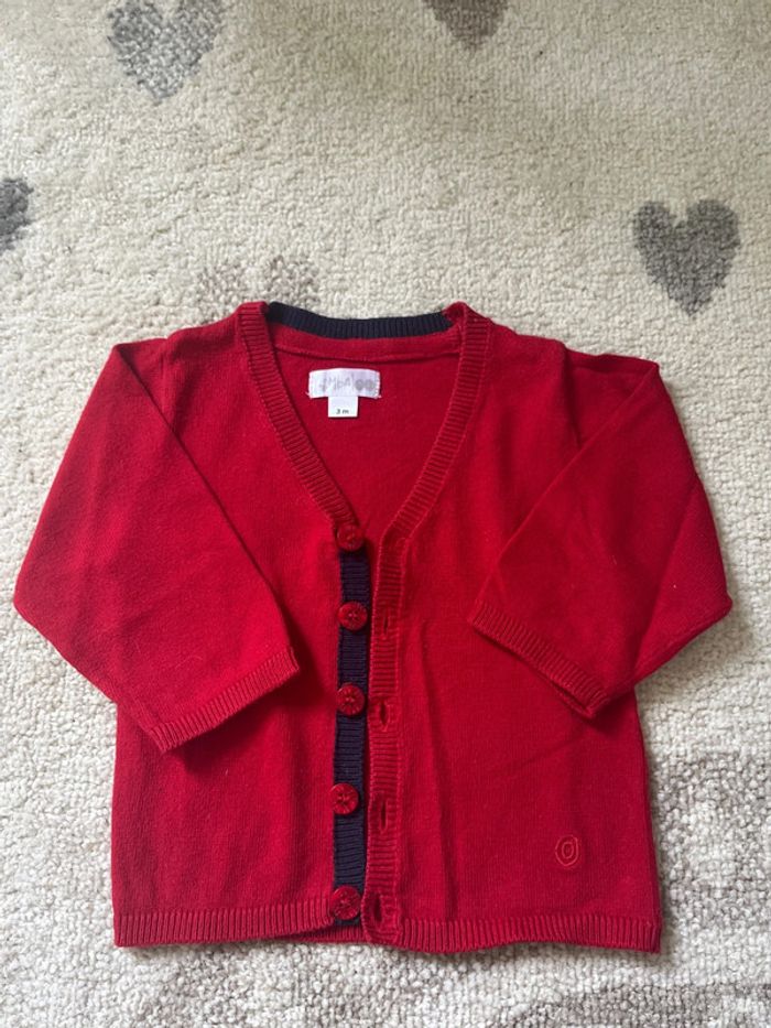 Gilet kimbaloo rouge et bleu très bon état taille 3 mois #gilet #bebegarcon #bébéfille #3mois #tresbonetat