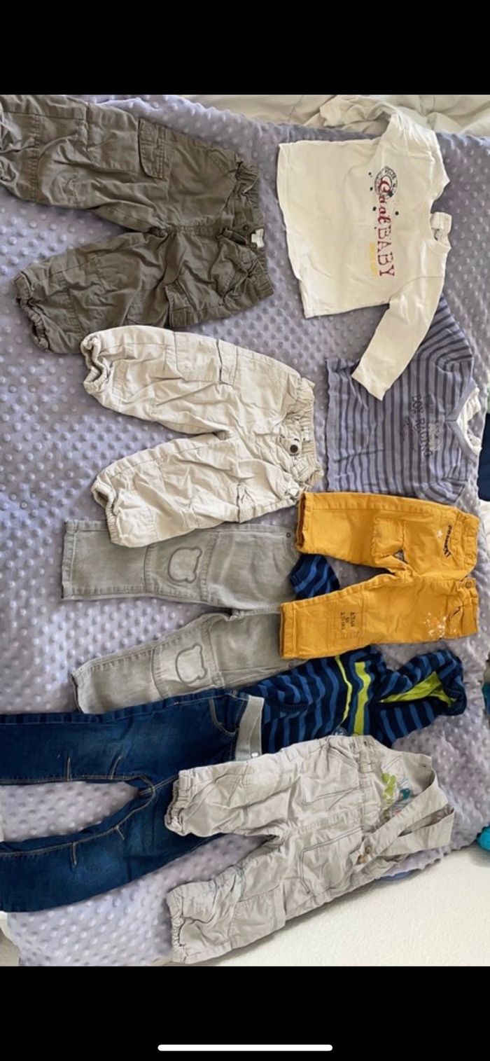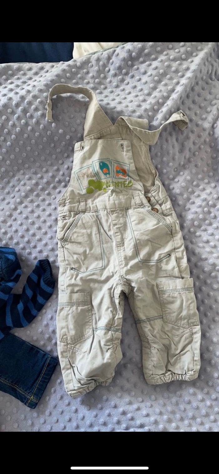 lot 18 mois garçon 1 salopette 1 pull à capuche 5 pantalons 1 pull léger 1 teeshirt à manche longue.