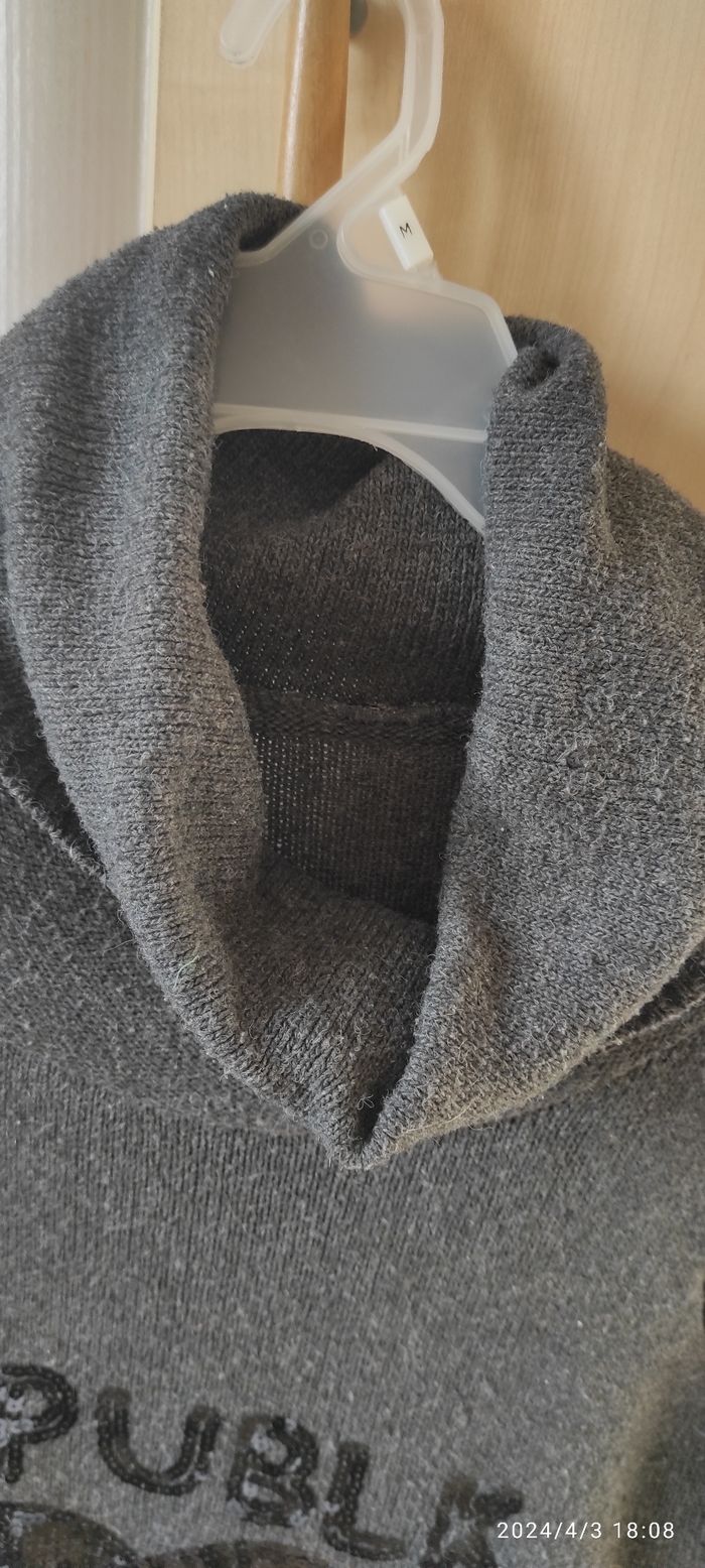 Pull tunique à col roulé couleur gris avec sequins noir, très bon état porté peut de fois. Taille 38