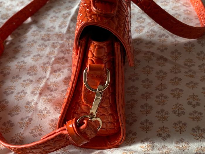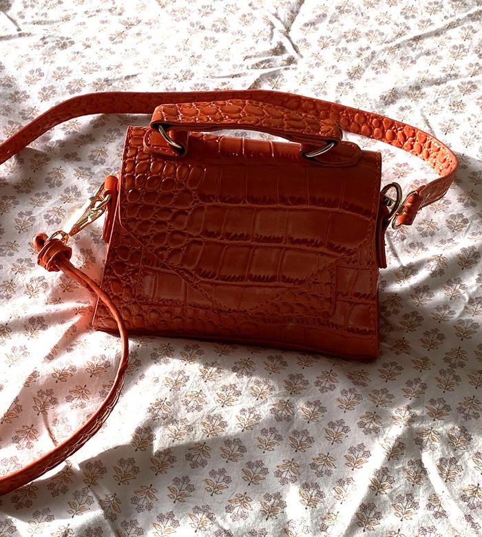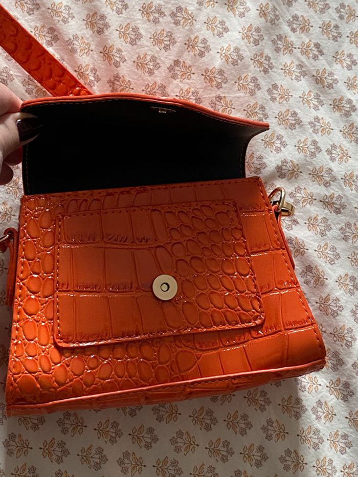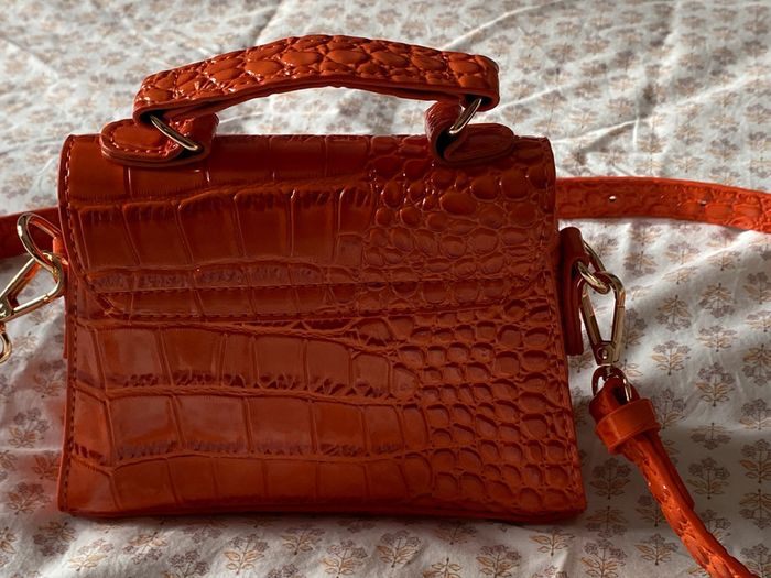 Mini sac à main orange foncé NEUF (jamais servi) En cuir synthétique Effet croco Fermeture par bouton magnétique Petite poche devant Porté main ou en bandoulière bandoulière amovible #JosyshopSac