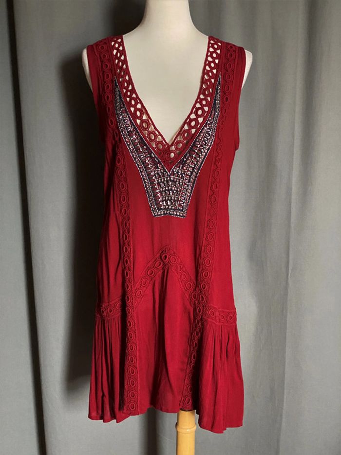 Robe de fête Tularosa Robe chic bordeaux Tularosa Excellent état Taille M Décollée en V perlé 100% Polyester Prix d'achat 240 euro #JosyshopRobe