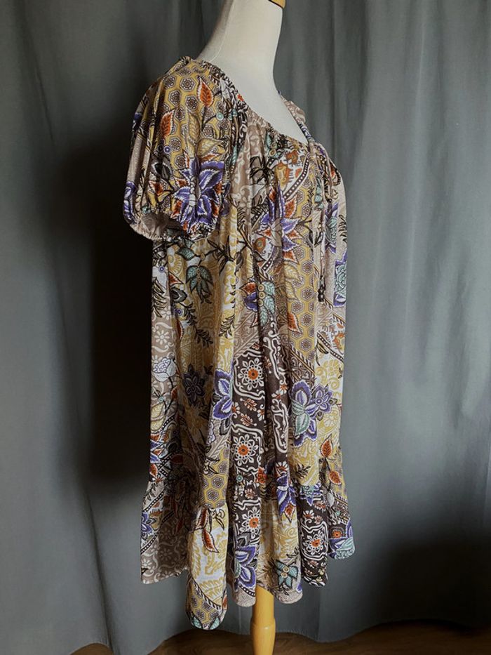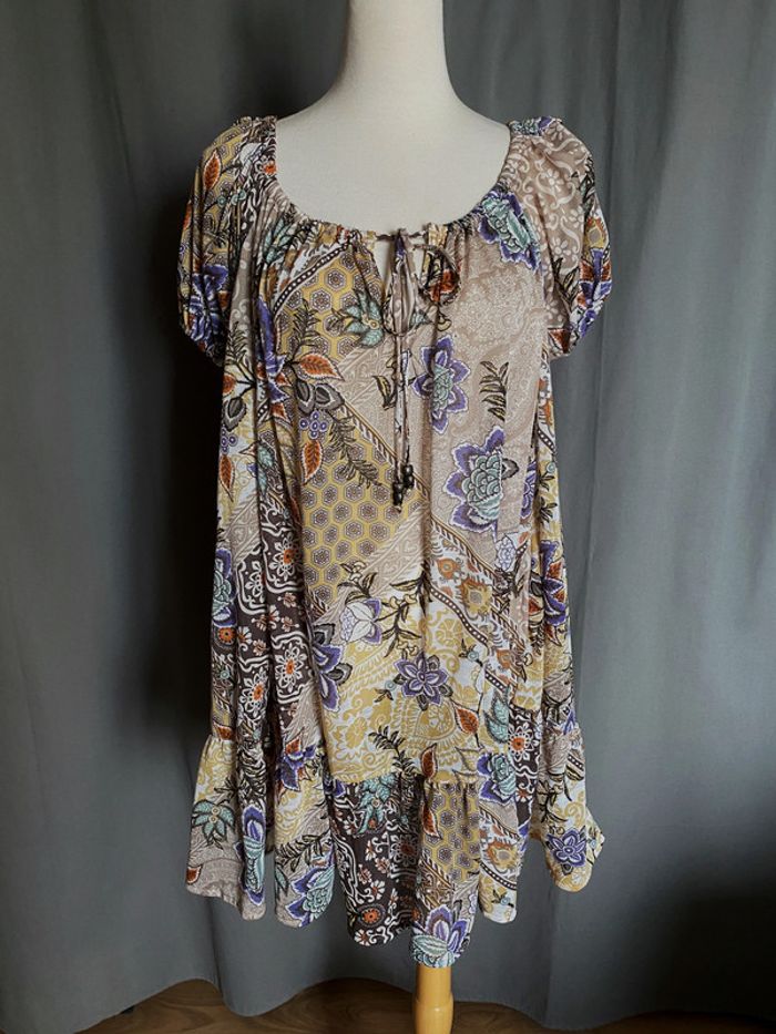 Tunique fleurie Mango Taille L Parfait état Vêtement ample Manches courtes élastiquées 100% polyester #JosyshopRobe