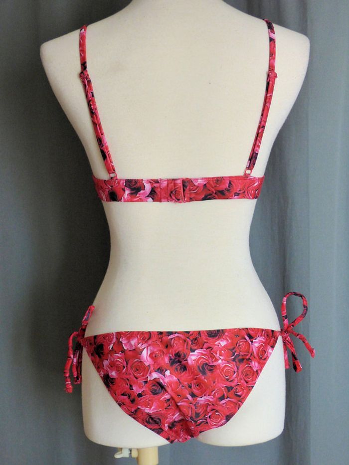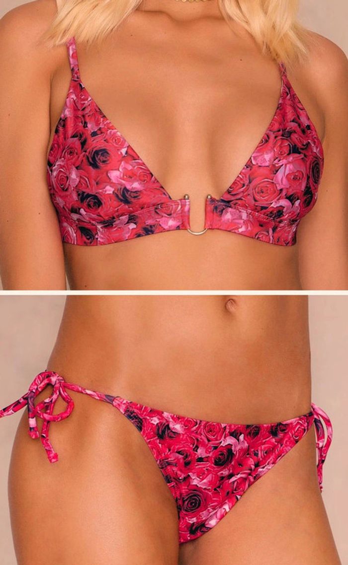 Maillot de bain triangle 2 pièces NA-KD NEUF Haut L et slip M Rouge à fleurs, boucle en métal devant Prix en boutique : 48 euro #JosyshopMaillot