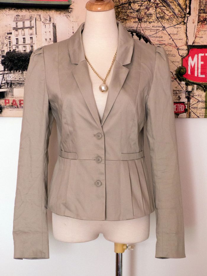 Blazer classe beige doublée H&M NEUF Taille 38 60% Coton - 38% Polyamide - 2 % Élasthanne Doublure 100% polyester Lavable en machine à 40° #JosyshopVeste