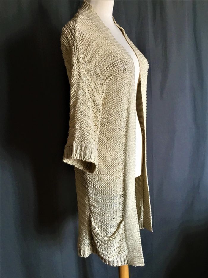 Gilet ajouré beige New Look Très bon état Taille M 61% Acrylique et 39% Nylon Ouvert, sans fermeture 2 poches en bas sur les côtés #JosyshopGilet