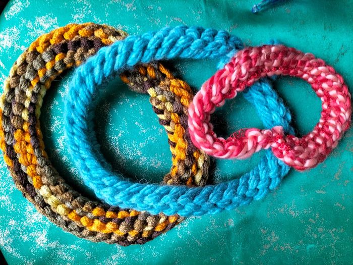 Lot de 3 serres-tête en laine de diamètres et couleurs différents.