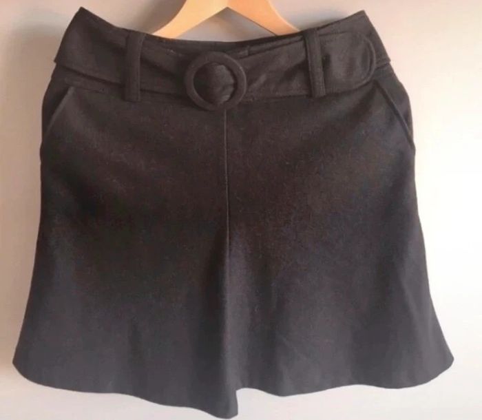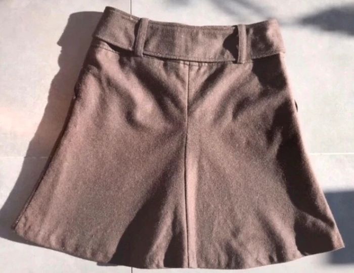 jupe 49% laine idéal mi saison et hiver très joli avec des escarpins ou des bottes ceinture amovible 2 poches laterales couleur marron chocolat aucun défaut
