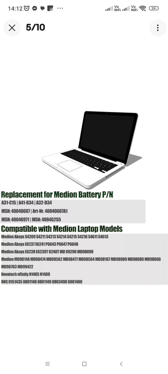 Batterie ordinateur portable A41-B34-2600, modèles compatibles sur les photos