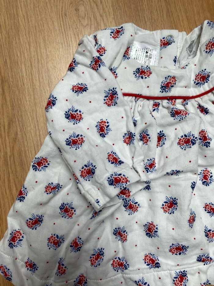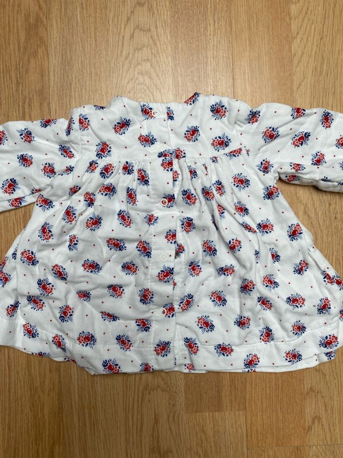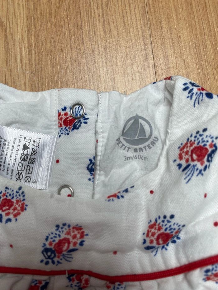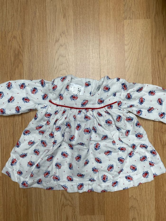 Robe petit bateau blanche avec des fleurs bleu et rouge Ouverture avec Pressions dans le dos #gaelle77176_fille3mois