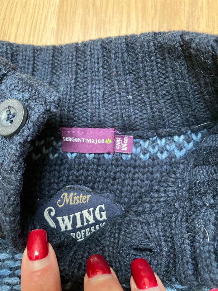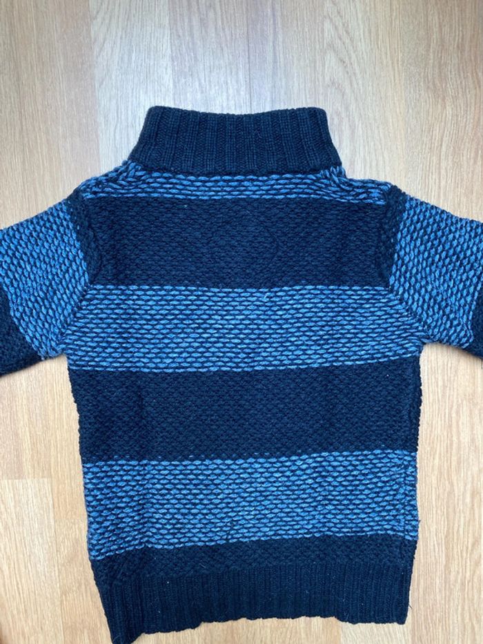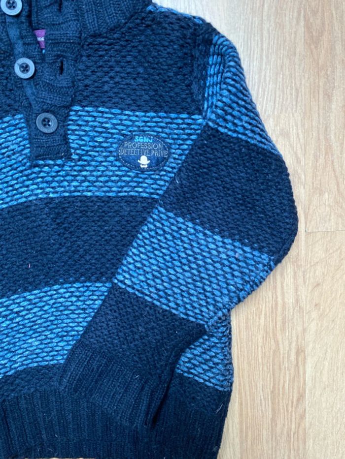 Gros pull rayé bleu marine et bleu clair Ouverture à la tête avec 3 boutons Col montant 4 ans #gaelle77176_garcon4ans