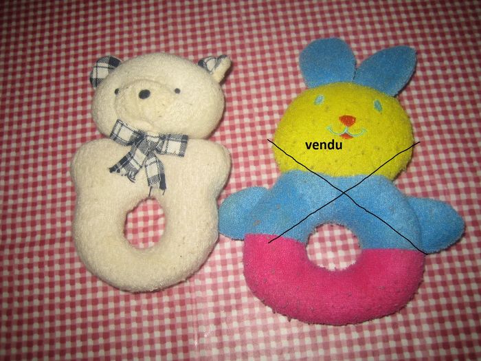 hochet forme ours en tissus en très bon état le lapin est vendu