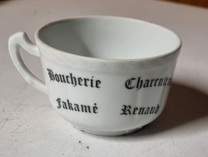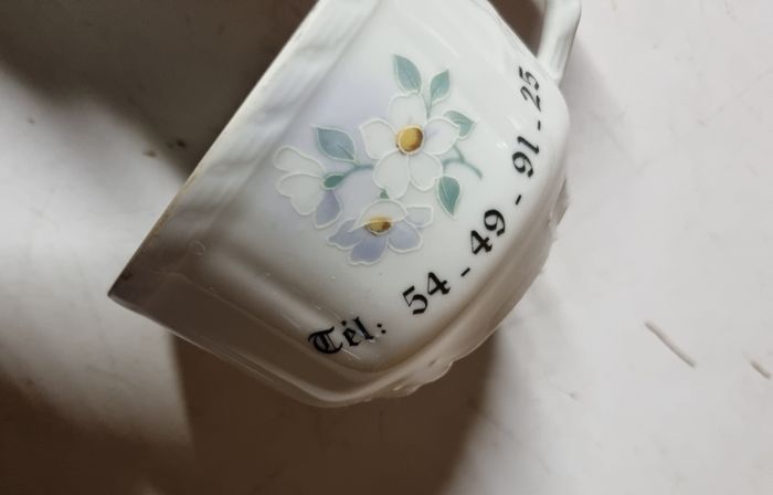 tasse publicitaire en porcelaine blanche fleurie vintage - photo numéro 1