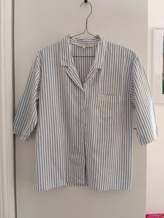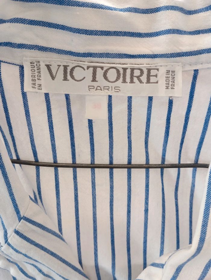 Chemise vintage à rayures bleus /blancs Made in France Victoire Paris taille 38 100% coton Mesures Epaules 47cm Aisselles 51cm Longueur 64cm