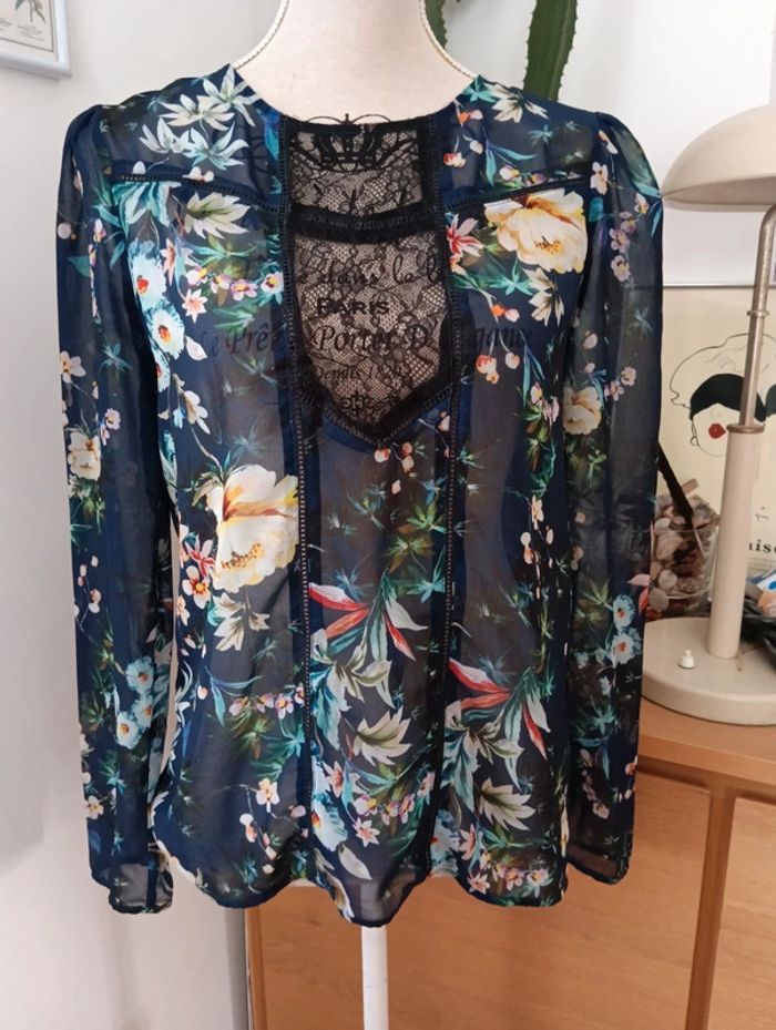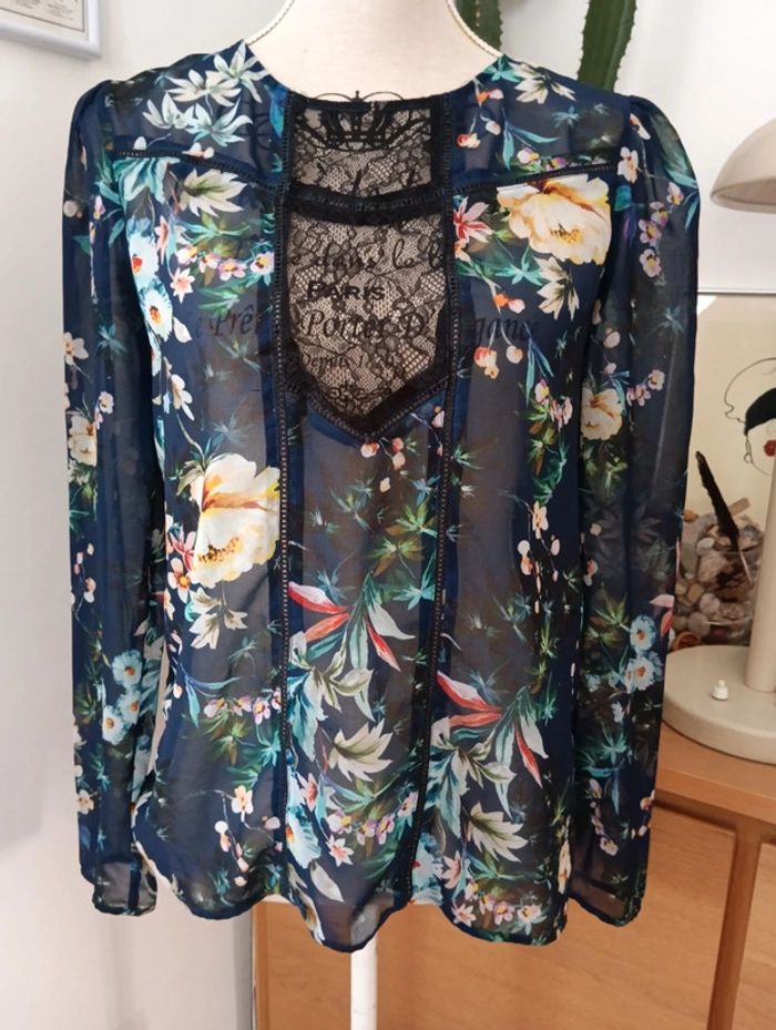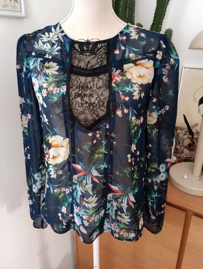 Blouse voile dentelle fleurs multicolores Morgan taille 38 - photo numéro 1