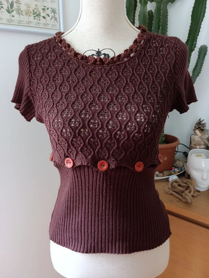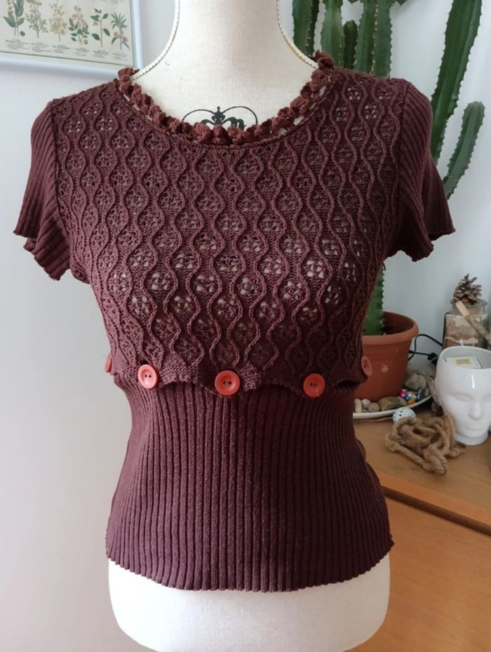 Top pull ajouré chocolat la fée maraboutée vintage taille 36/S