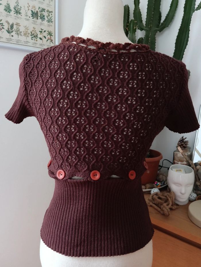 Top pull ajouré chocolat la fée maraboutée vintage taille 36/S - photo numéro 10