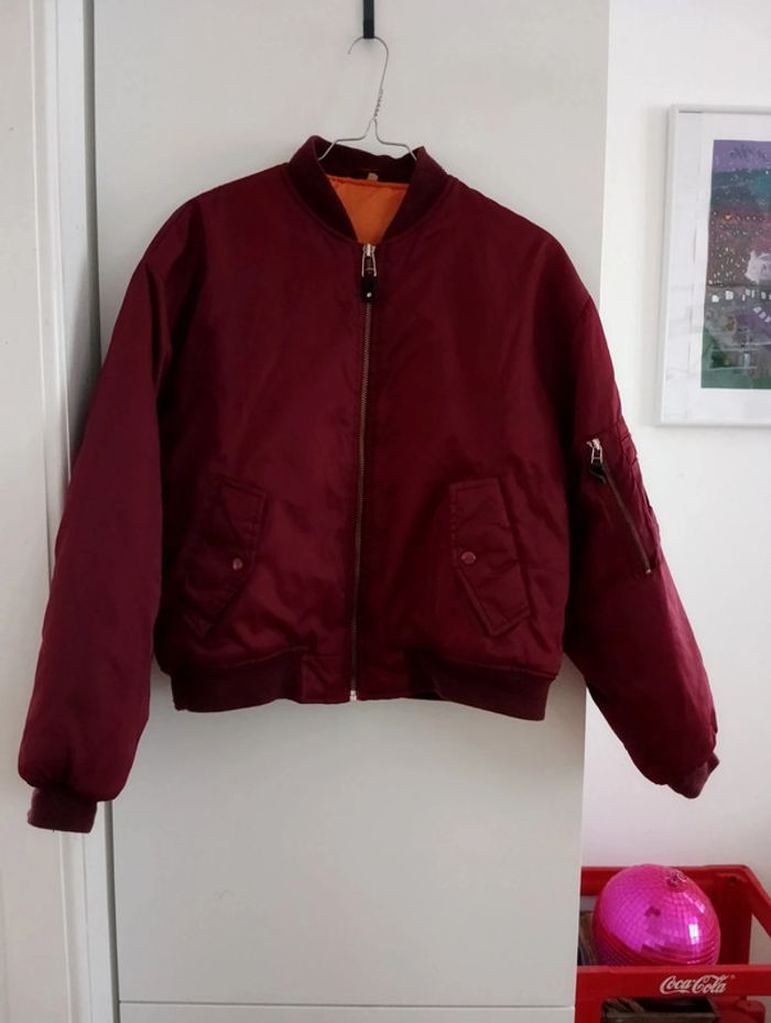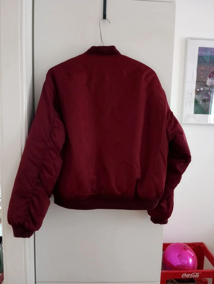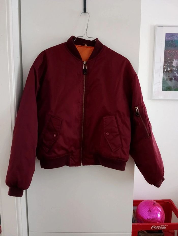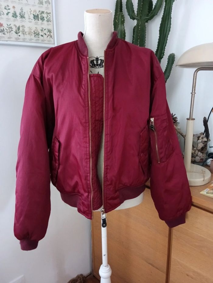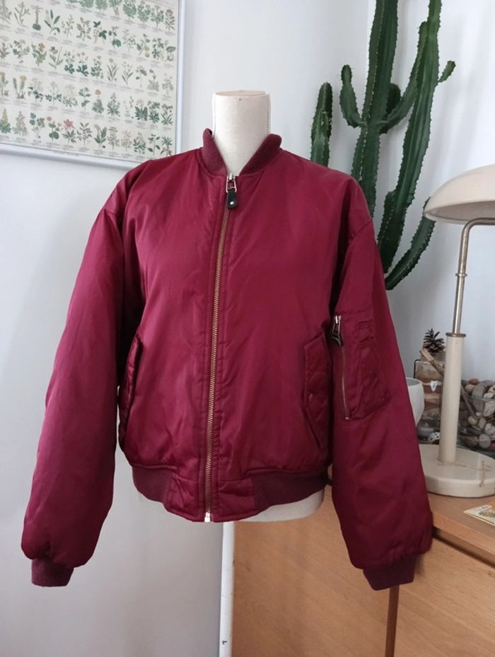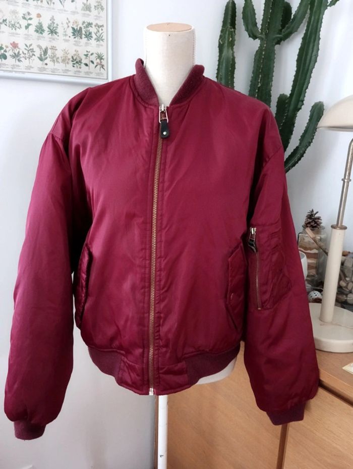 Bomber vintage bordeaux taille M Intérieur orange Mesures Épaules 53cm Aisselles 60cm Longueur 62cm