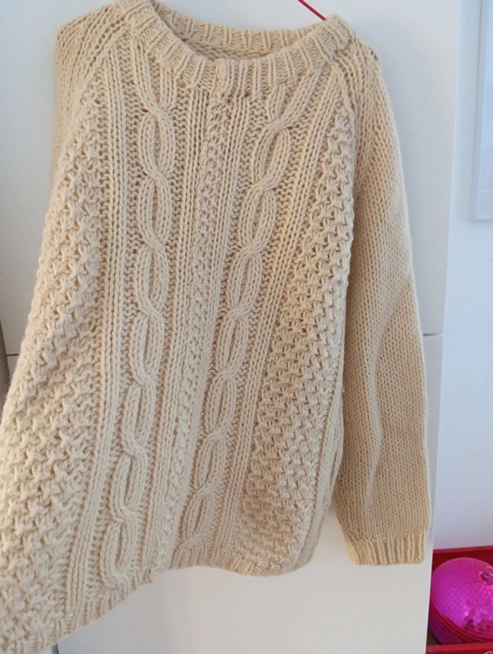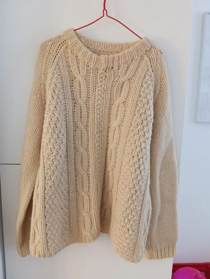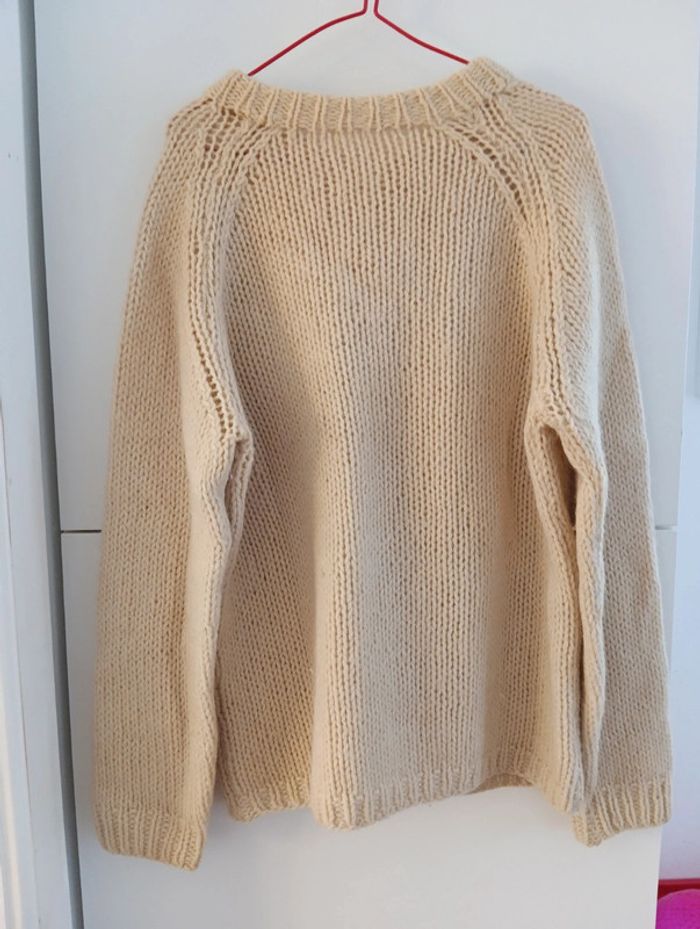Pull écru torsadé fait main taille 42 Mesures Aisselles 54cm Longueur 61cm La couture a été faite sur le devant et non sur les côtés
