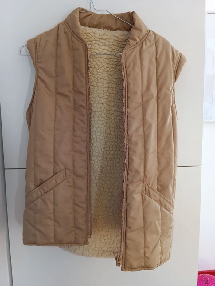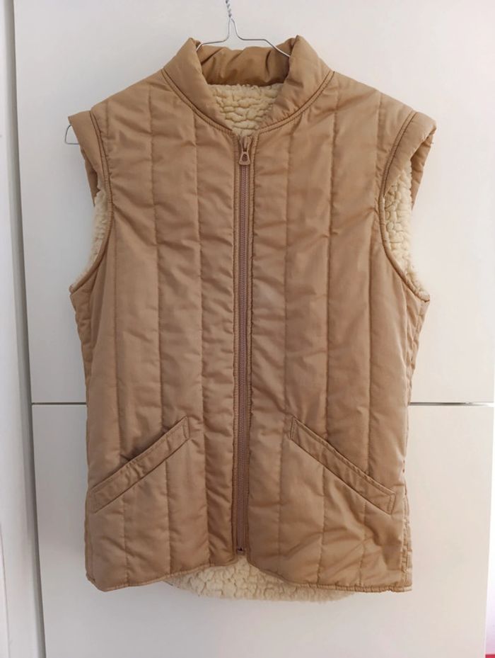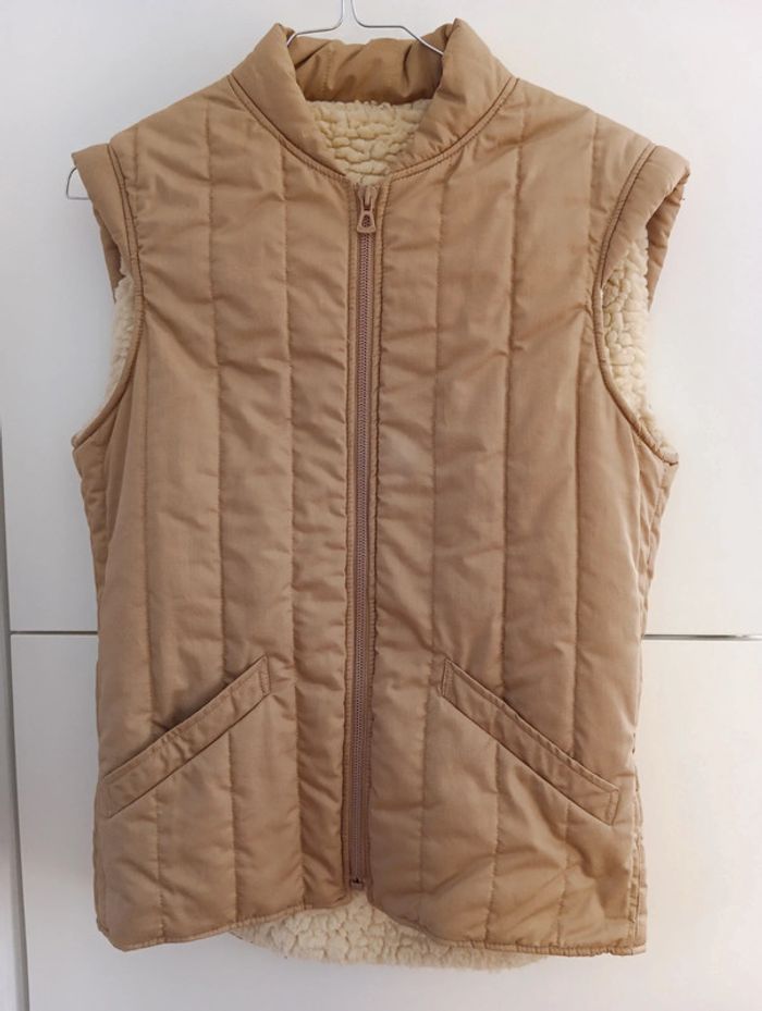 Veste sans manche matelassée vintage beige intérieur Moumoute taille 36 estimée - photo numéro 6