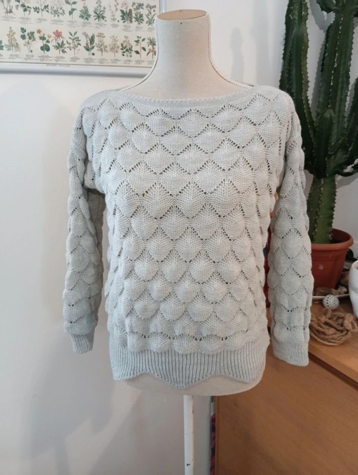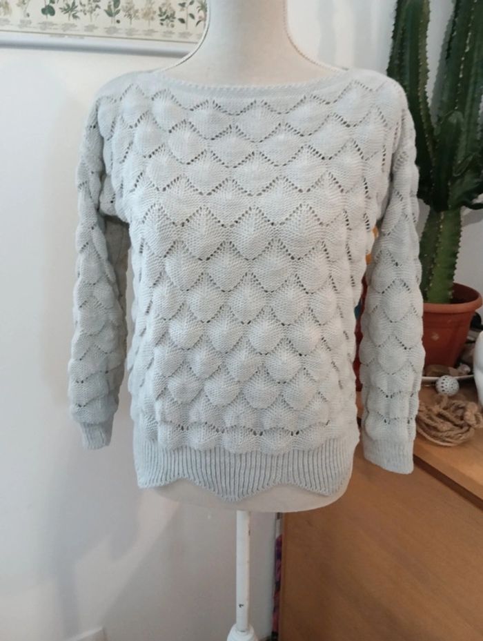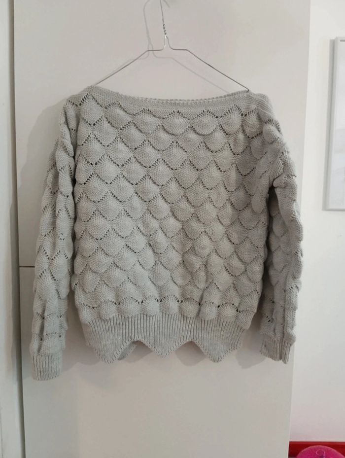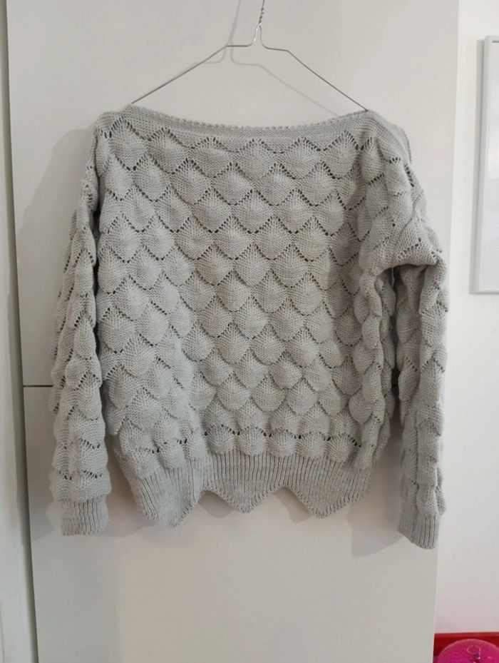 Pull court jolie maille gris perle taille M - photo numéro 1